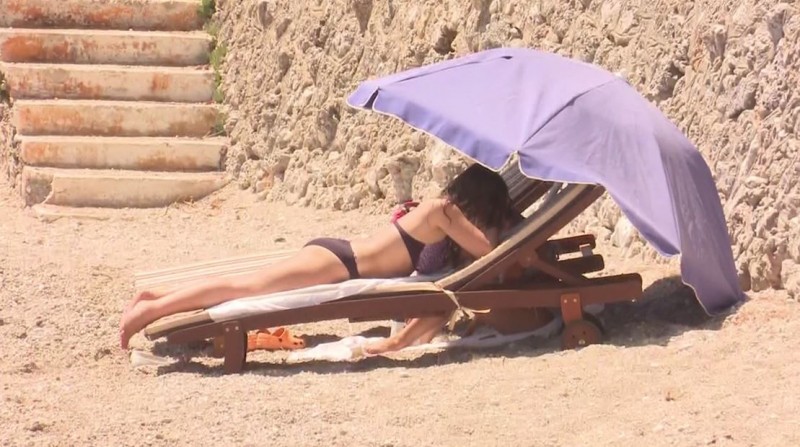 Dy vajzat e reja, edhe pse duhet të ishin në orar pune, e kanë shpërfillur atë, duke bërë disa orë plazh, brenda territorit të lakmueshëm të rezidencës së Dhërmiut. Madje pasi e kanë kuptuar që po filmoheshin janë munduar të fshihen pas një çadre plazhi, madje njëra prej tyre ka urdhëruar gardistin e rezidencës të largojë grupin e xhirimit të Televizionit Klan, pasi mesa duket, u prishi orët e relaksit.