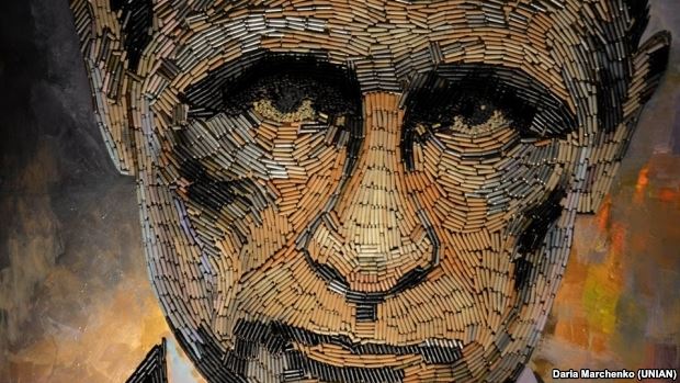 Një artiste nga Ukraina ka përdorur 5 000 fishekë të shpenzuar për të krijuar një portret të presidentit rus, Vladimir Putin, të titulluar “Fytyra e luftës”.