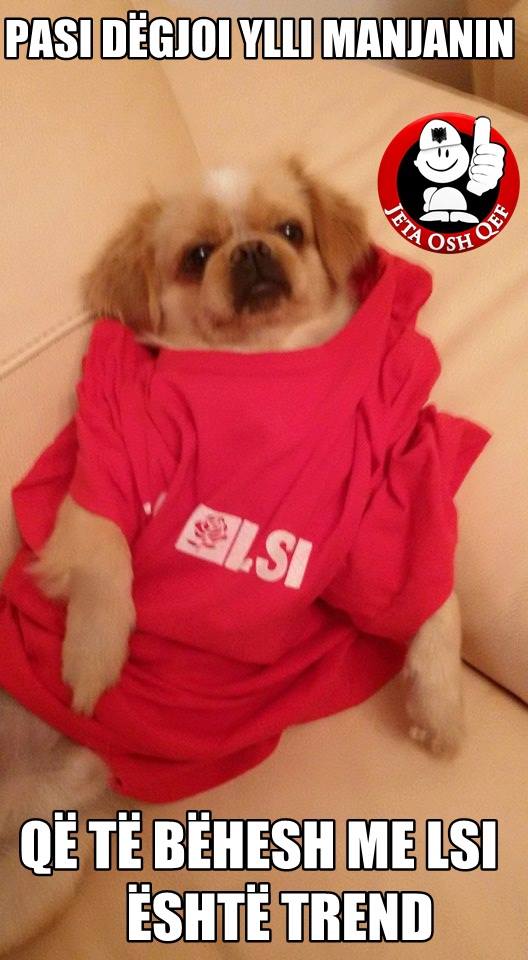 “Pasi dëgjoi Ylli Manjanin, ‘që të bëhesh me LSI është trend’, qeni im u anëtarësua…”, është diçitura që shoqëron këtë foto.