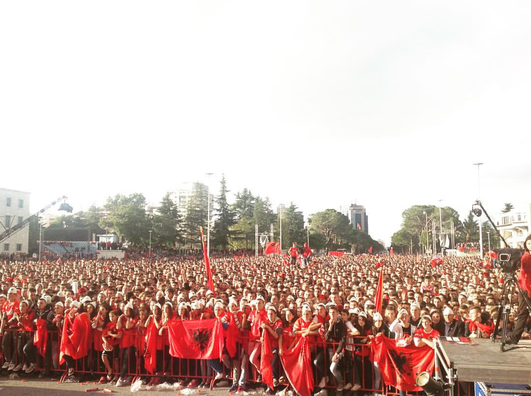 Një festim i jashtëzakonshëm ishte ai në sheshin Nënë Tereza me futbollistët e Kombëtares shqiptare. Mijëra të rinj nga Tirana por edhe qytete të tjera të Shqipërisë kënduan, hodhën valle dhe dërguan mesazhe të unitetit kombëtar ndërkohë që shpalosën deri në fund gëzimin për kualifikimin kombëtares së futbollit .