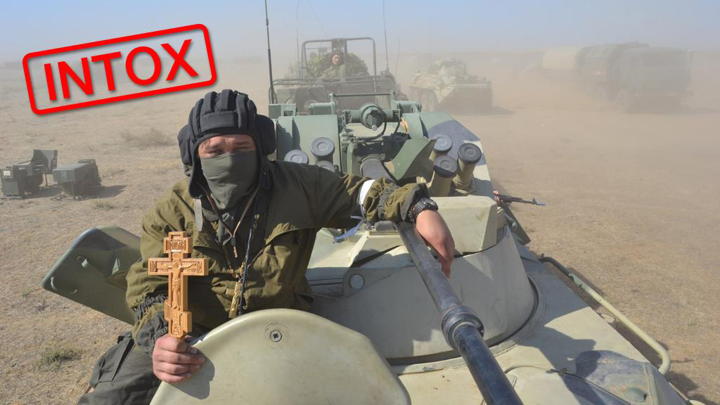 I ulur në një makine lufte, një ushtar rus tregon në dorë krenarisht një kryq ortodoks në mes të një peizazhi shkretëtire. Kjo foto është prezantuar në rrjetet sociale edhe në ato arabe por edhe në ato ruse si një shenjë e prezencës së trupave ruse në tokën siriane.