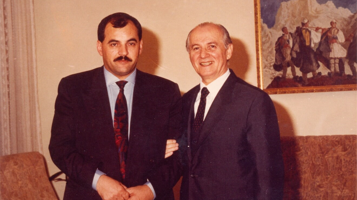 Në foto, Ajdin Sejdia me ish-Presidentin komunist Ramiz Alia në vitin 1991