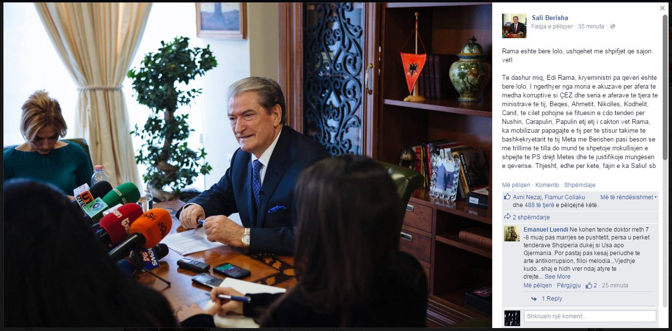 Mesazhi i plotë i Sali Berishës në “Facebook”
