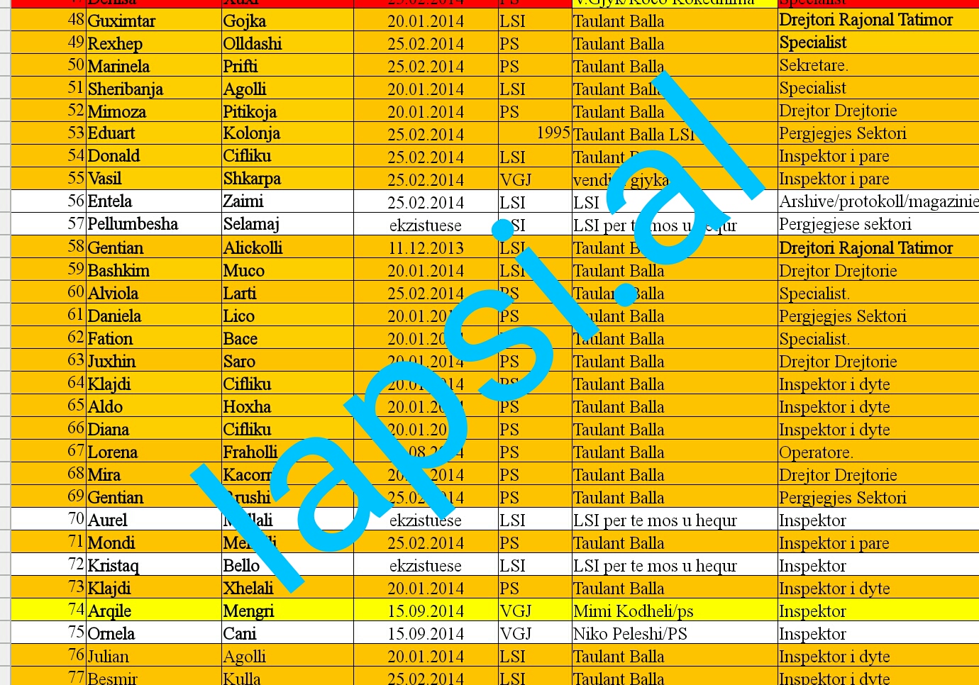 Një skandal i vërtetë është zbuluar sot. Megjithëse është folur shumë për mënyrën se si rekrutohen njerëzit në administratën socialiste, lapsi.al ka arritur të zbulojë dokumentin që provon mënyrën abuzive jashtë çdo profesionalizmi por vetëm me teserë partiake, për futjen e personave të ndryshëm në punë.