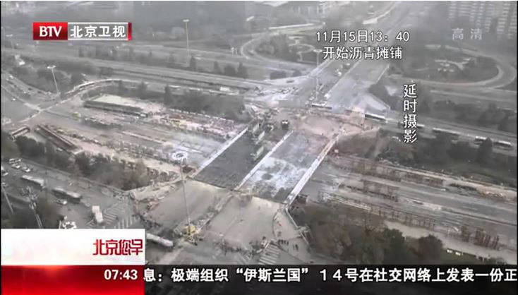 Pamjet e kapura me xhirime të shpejtë shfaqin rindërtimin e një mbikalimi në Pekin.