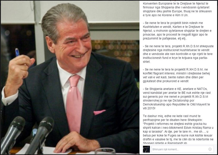 – Se nene te tera te projektit R.Xh.D S.M anullonin Konventen Europiane te te Drejtave te Njeriut te firmosur nga Shqiperia dhe i vendosnin qytetaret shqiptare diku jashte Europe, thuaj ne te shkuaren e tyre apo ne Korene e Kim Il Un.