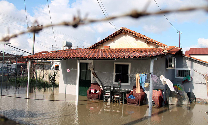Një shtëpi e përmbytur pas daljes nga shtrati të lumit Erzen, në fshatin Sukth i Ri, në Durrës, më 7 janar 2016. Si pasojë e reshjeve të shiut të rëna gjatë ditëve të fundit janë përmbytur shumë fshatra në të gjithë vendin. Foto: LSA / MALTON DIBRA