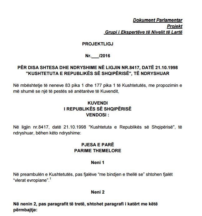 Sipas draftit, anëtarët që emërohen nga Presidenti i Republikës dhe Kuvendi, përzgjidhen nga lista e kandidatëve të hartuar nga Këshilli i Emërimeve në Drejtësi.