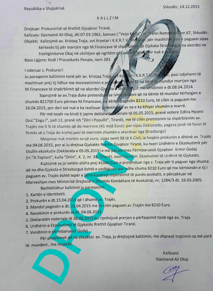 Ky është kallëzimi penal i familjes Okaj nga Shkodra, ndaj Kristaq Trajës.
