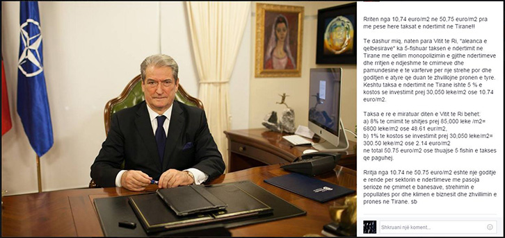 Ish-kreyministri Sali Berisha ka denoncuar sot pesëfishimin e taksës së ndërtimit në Tiranë.