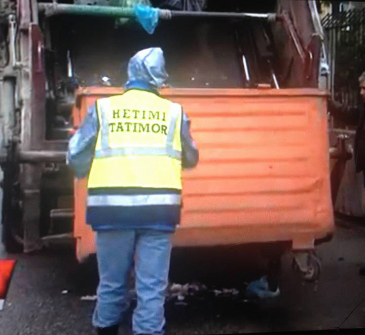 Ky punonjës në fakt është i kompanisë që mbledh mbeturinat në Tiranë, pavarësisht se mban veshur një fanellë të Hetimit Tatimor.