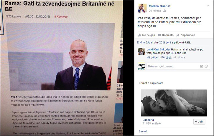 “Pas kësaj deklarate të Ramës, sondazhet për referendum në Britani janë rritur dukshëm pro daljes nga BE”, ironizon Endira Bushati në “Facebook”, pas kësaj deklrate të kryeministrit Edi Rama.