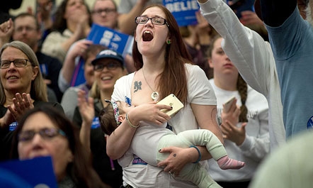 Fotoja e një nëne të re është bërë një hit i papritur në fushatën e Bernie Sander në SHBA, pasi një foto e saj teksa ushqen fëmijën me gji ka ndezur debate në internet.