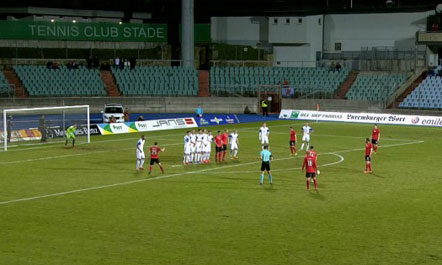 Pikërisht numri 1 i Luksemburgut, përjashtohet nga ndeshja ne minutat e fundit të pjesës së parë, pasi frenoi në mënyrë të parregullt vrullin e Cikalleshit i cili ishte drejtuar drejt portës së boshatisur.