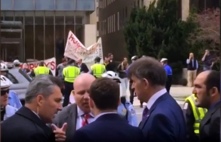 Kalimtarët kanë filmuar momente kur truprojat e ngarkuar për sigurinë e Presidentit turk shqyen parulla anti-Erdogan nga duart e protestuesve, ndërsa gazetarët deklaruan se ata u shtynë edhe dhe shqelma.