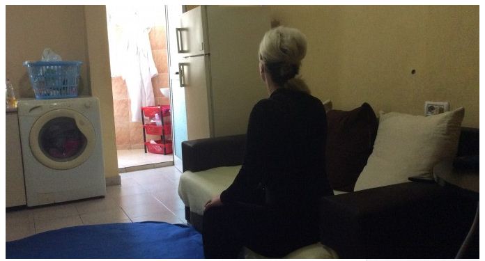 M. jeton në një apartament me një dhomë gjumi, ndërsa korridori është edhe kuzhinë edhe lavanderi, edhe sallon, edhe kuzhinë. Është veshur me të zeza dhe një rrip i shtrëngon barkun. Kur e pyes a i bën keq kjo bebit, thotë që ajo në media dëgjoi se është shtatzënë. “Menjëherë bëra testin, por nuk doli gjë. Mbase dhe jam, do e bëj prapë testin. Gjithsesi unë jam 29, dhe nuk jam 25 vjeçe dhe as pesë muaj shtatzënë. Ndoshta është një vajzë tjetër, por unë nuk e kam pyetur kurrë Turin për këto gjëra. Nuk bëja kurrë pyetje, e doja shumë, për ta pyetur. Megjithëse nuk besoj, ndoshta media e ka gabim”.