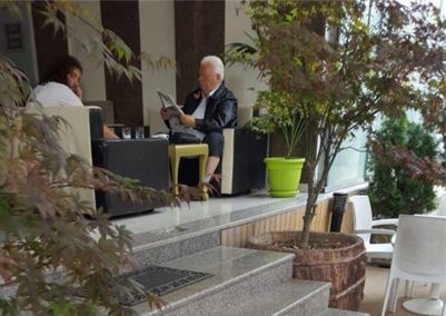 Në këtë foto ai është në një nga kafet e Tiranës sot në mëngjes.