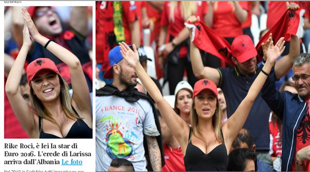 Nuk iu ka shpëtuar objektivave të fotografëve gjatë ndeshjes Francë-Shqipëri, shkruan sot gazeta e njohur italiane ”Corriere della Sera” për tifozen shqiptare Rike Roci.