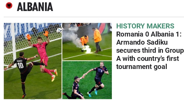 Me fitoren historike ndaj Rumanisë, Shqipëria ka bërë që e gjithë bota të flaës për të. Edhe para kësaj ndeshje të shumtë ishin mediat që i kushtonin artikull lojës së mirë të zhvilluar nga kombëtarja jonë pavarësisht dy humbjeve. Gjithashtu na kushtuan shumë vëmendje për tifozerinë që nuk reshti në asnjë moment së mbështeturi ekipin deri në minutën e fundit të 3 ndeshjeve të fazës së grupeve.