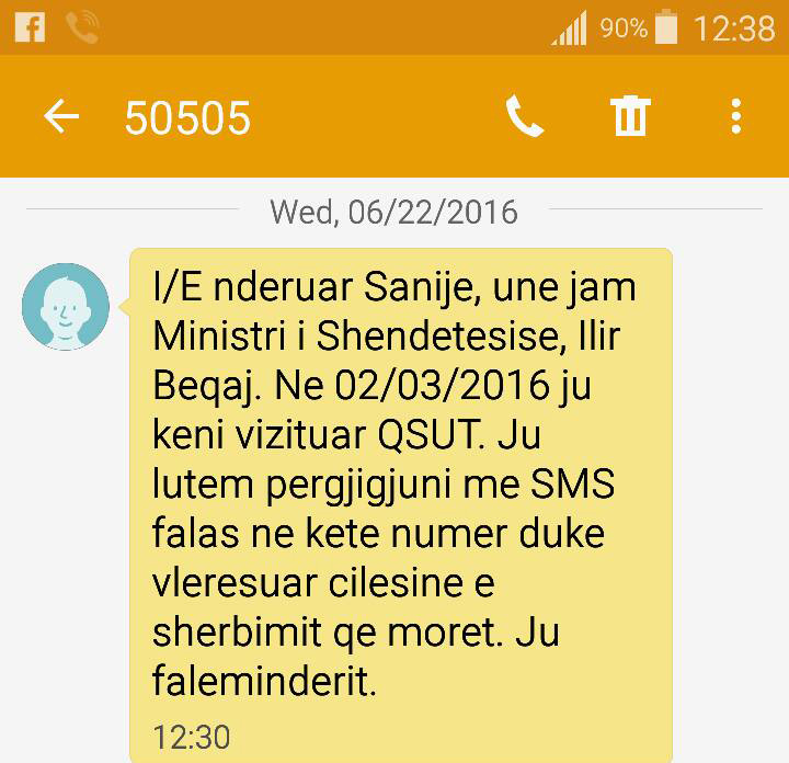 Fotografi i njohur Felix Bilani, ka postuar në profilin e tij në “Facebook” një mesazh të Ministrisë së Shëndetësisë, në emër të vetë ministrit Ilir Beqja. Sipas këtij mesazhi minsitri i kërkonte nënës së Bilanit që të vlerësonte cilësinë e shërbimit. Por në fakt nëna e fotografit, siç edhe ai konfirmon, ka dy muaj që ka ndërruar jetë.