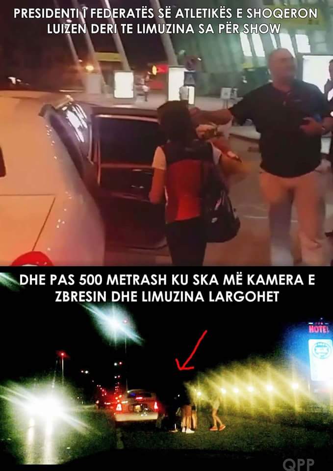 Sipas fotomontazhit, presidenti ka marrë një limuzinë, sa “për sy e faqe” ku ka hipur nënkamiponen dhe pas disa metrash, kur gazetarët dhe kamerat i kishte lënë pas shpine, e ka zbritur nënkampionen…