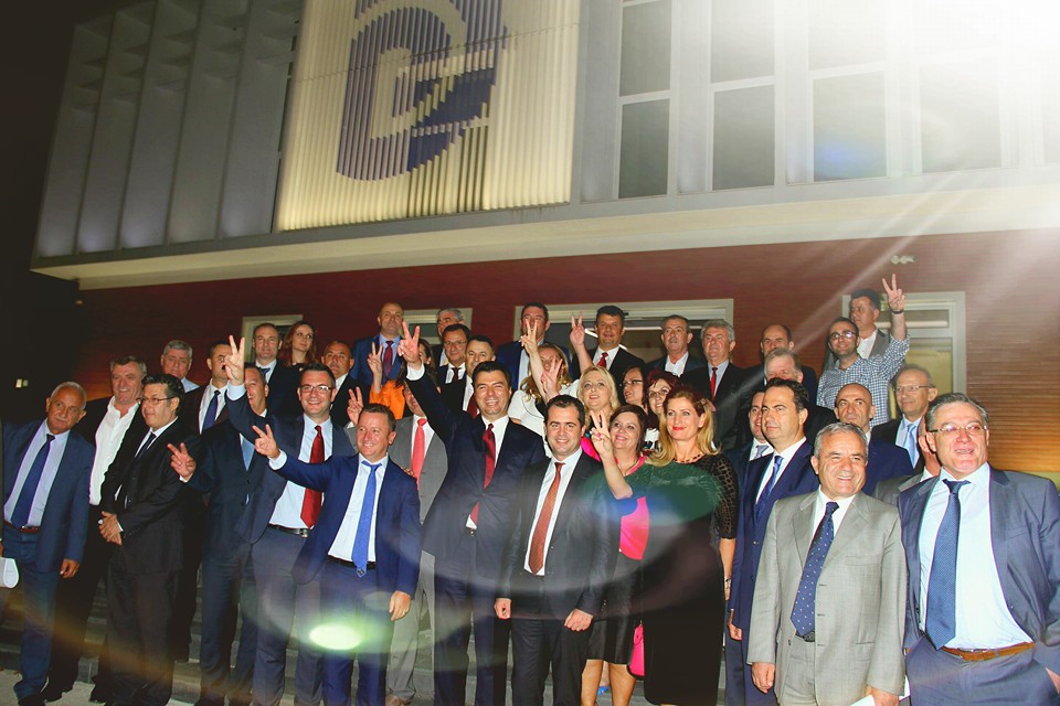 Deputetët e PD dhe partive aleate kanë festuar dhe më pas pozuar për një foto mbrëmë para selisë së PD disa caste pasi reforma kaloi në Parlament.