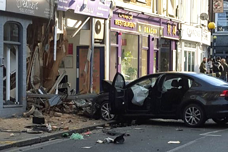Pas ndjekjes nga policia britanike, një makinë që drejtohej nga një trafikant shqiptar droge, përplas makinën e tij me disa dyqane në lagjen Crouch End në veri të Londrës.