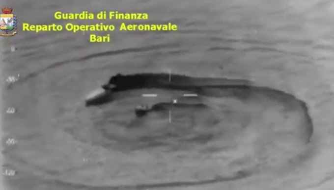 Megjithëse moti ishte shumë i keq dhe binte shumë shi, është vijuar me ndjekjen e mjetit deri në ujërat ndërkombëtare dhe njëkohësisht nga ana jonë janë njoftuar kolegët e Guardia di Finanzës në Bari.