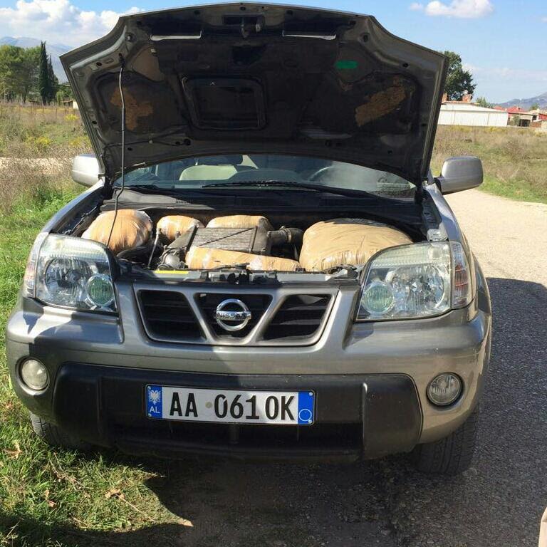 Pas kontrollit të imtësishëm rezultoi se poshtë kofanos ndodheshin 10 pako të formave dhe përmasave të ndryshme; të mbështjella me natriban, brenda të cilave kishte lëndë të dyshuara narkotike Cannabis Sattiva.