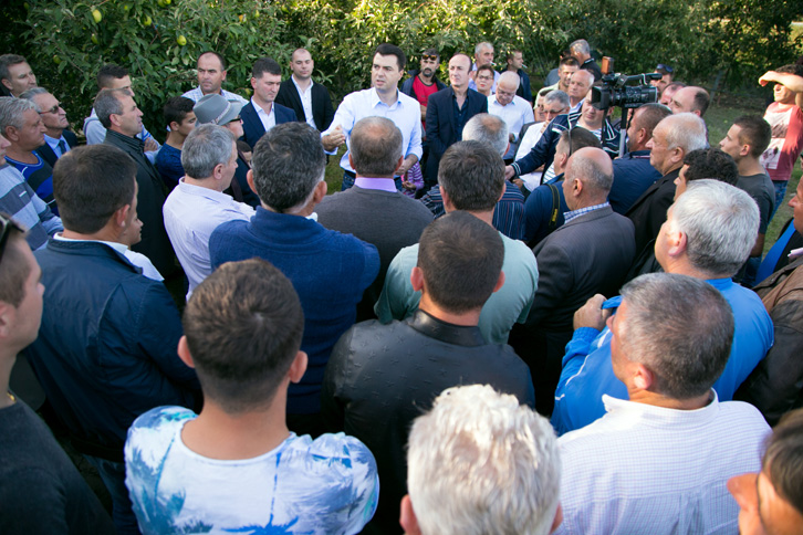 Në Peqin, kryetari i Partisë Demokratike, Lulzim Basha u ndal në një fermë mollësh. Pronari tha se para katër vitesh ka marrë vazhdimisht subvencione, ndërsa tani asgjë.