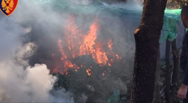 Gjatë operacionit u evidentuan dy kapanonë të vegjël të mbuluar me plasmas, ku brenda tyreu gjetën tëvarura për t’u tharë 1100 bimë narkotike. Gjithashtu u gjetën dhe u sekuestruan dhe 11 thasë të mbushur me boçe të bimëve narkotike me peshë 95 kg Cannabis Sativa.