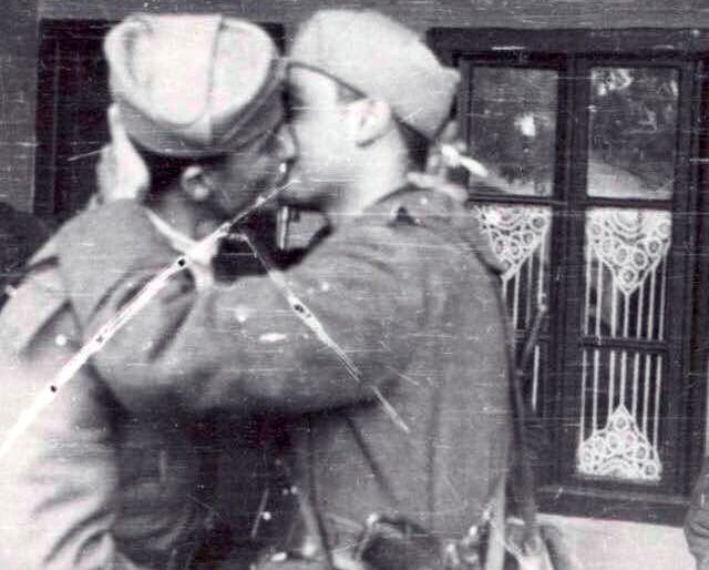 Fotoja e mësipërme tregon dy partizanë që festojnë çlirimin e Tiranës më 17 nëntor të vitit 1944. Gëzimin për fitoren shihet që e shfaqin me një puthje në buzë.