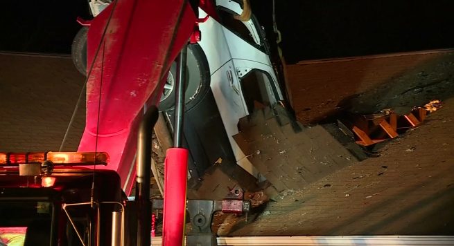 Automjeti i drejtuar nga një grua e moshuar u ngul në çatinë e një shtëpie në Uinston Salem të Karolinës së Veriut.