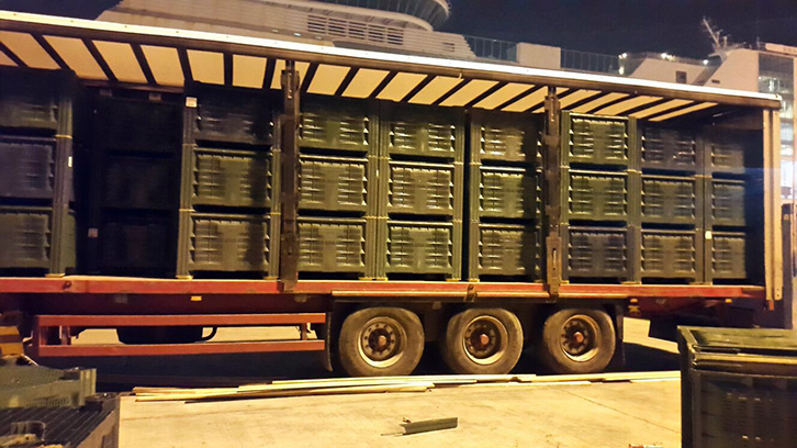 Kamioni ishte i ngarkuar me arka plastike, bosh dhe lënda narkotike ishte e futur në të gjitha këmbët e arkave, ku pas peshimit rezultoi në total një sasi rreth 450 kg lëndë narkotike e dyshuar e llojit cannabis sattiva.
