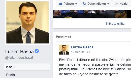 Kreu demokrat ka reaguar në Facebook për shfaqjen e Elvis Roshit në krah të Asrben Ahmetajt në Kavajë teksa ky i fundit shpall kandidaturën për deputet. Basha thotë se Roshit nuk i mjafton heqja e mandatit por ai vazhdon ende detyrën dhe madje të jetë i plotfuqishmi i Ramës në Kavajë.