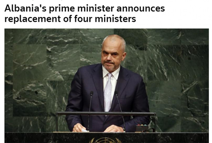 “Kryeministri shqiptar Edi Rama tha të dielën se do të zëvendësojë katër ministra të tij, një lëvizje e dështuar për të kënaqur protestuesit e opozitës të cilët kërkojnë krijimin e një qeverie teknike që të do të organizojë zgjedhje të lira parlamentare më 18 qershor. Por, në fjalimin e tij javor Rama tha se zëvendësimi i katër ministrave nuk ishte për shkak të presionit nga partneri i tij i koalicionit apo nga protestat e opozitës”, shkruan “Reuters”.