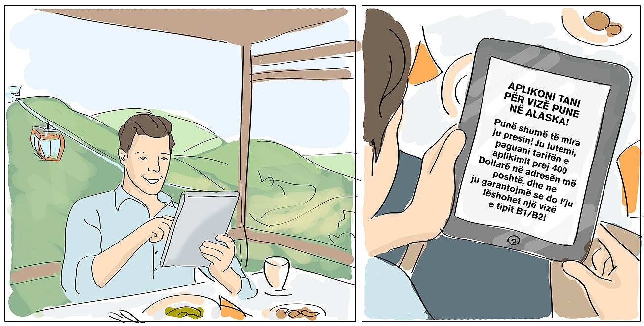 Image GalleryAmbasada amerikane në Tiranë ka njoftuar sot qytetarët shqiptarë se nuk ekziston asnjë program punësimi në Alaskë dhe gjithçka lidhur me të që është përhapur në internet, është mashtrim.