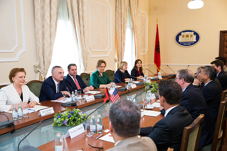 Kryetari i Kuvendit Meta i uroi mirëseardhjen në Shqipëri kongresmenëve amerikanë dhe vlerësoi rëndësinë e thellimit të partneritetit strategjik mes Shqipërisë dhe Shteteve të Bashkuara, duke shprehur njëkohësisht mirënjohjen për mbështetjen e vazhdueshme amerikane në drejtim të forcimit të demokracisë, sundimit të ligjit, luftës kundër korrupsionit dhe trafiqeve të lëndëve narkotike.