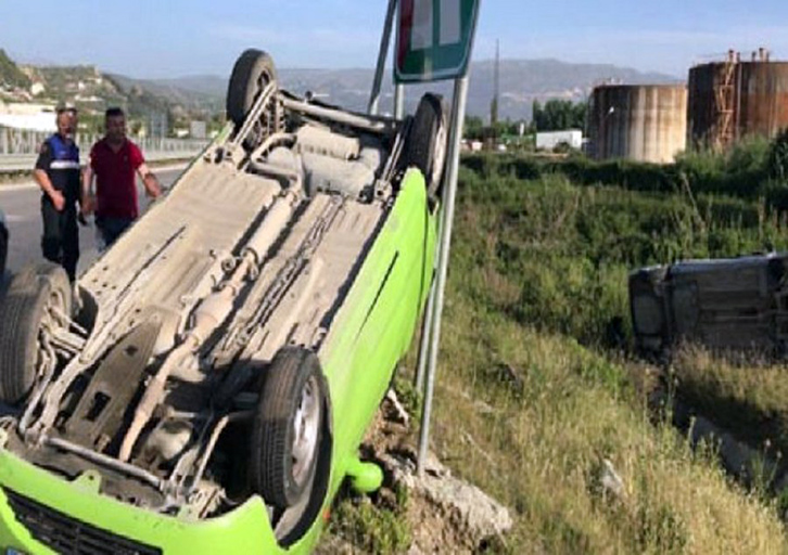Për shkak të manovrave të gabuara, një prej makinave ka përfunduar në kanal kurse tjetra është përmbysur.