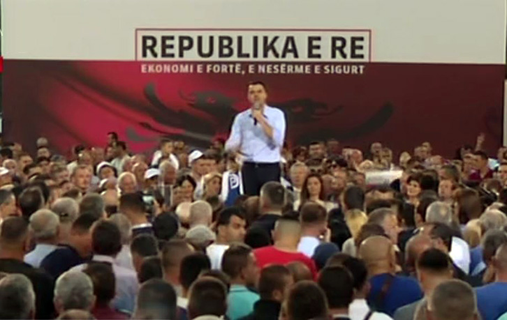 Në mitingun e sotëm të PD, për çeljen e fushatës elektorale të zgjedhjeve të 25 qershorit, ra në sy slogani që do të shoqërojë këtë forcë politike.