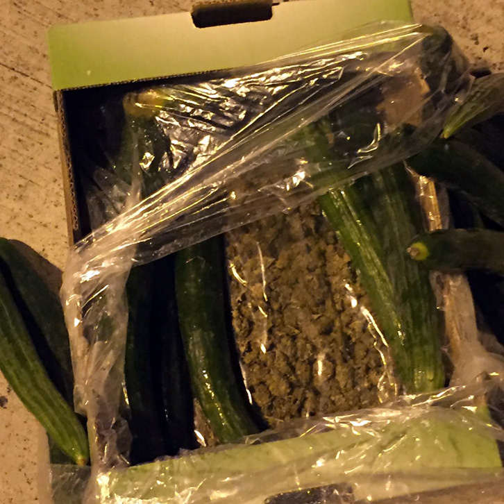 Kamioni ishte i ngarkuar me kuti të mbushura me kastravecë dhe në mes të kastravecëve kishte qese të mbushura me lëndë narkotike.
