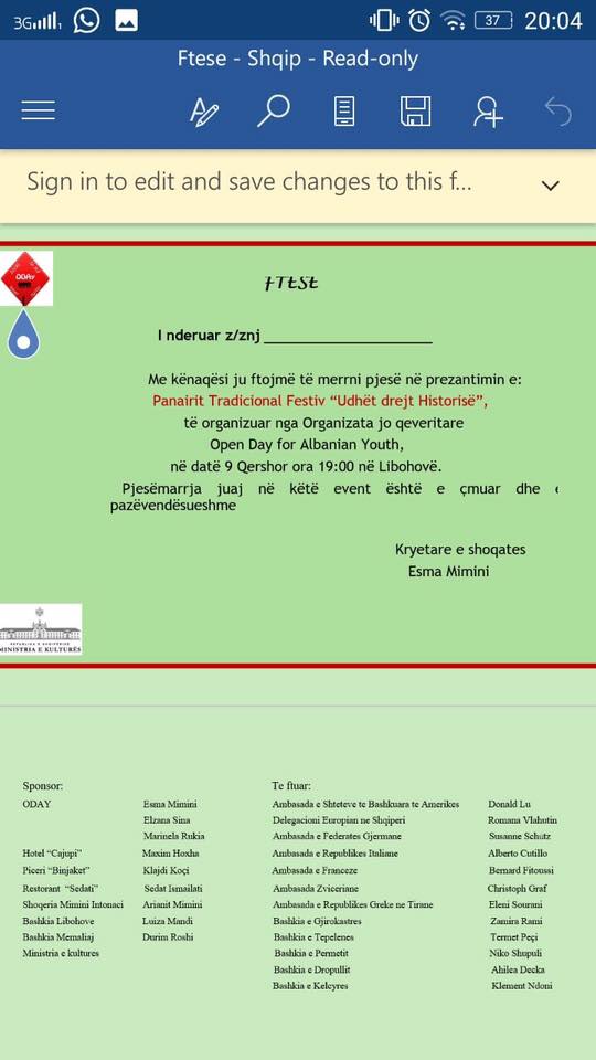 Dikush ka ndruar tekstin e fteses per aktivitetin e neserme qe Ministria e Kultures po perpiqet te organizoje ne Libohove, qartesisht si pjese e fushates elektorale te Zj. Kumbaro.