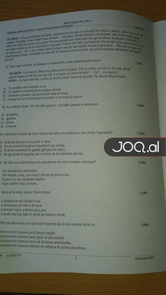 Sot maturantët po zhvillonin provimin e Letërsisë, ndërsa JOQ.al ka publikuar disa foto nga teza e provimit.