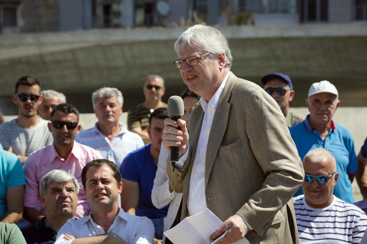 “Qeveria Rama duhet të ikë dhe kjo është më e thjeshta dhe më e mira. Socialistët nuk mund të bëjë ekonomi dhe nuk mund të menaxhojnë para. Kjo qeveri nuk ia ka arritur dhe nuk e ka bërë këtë. Partia Demokratike në bashkëpunim me Partinë Kristian-Demokratike Gjermane dhe me Fondacionin Kondard Adenauer ka hartuar këtë program ekonomik. Ky program siguron një ekonomi të fortë dhe më shumë vende pune. Partia Kristian-Demokratike Gjermane së bashku me Angela Merkelin e vërtetojnë çdo ditë që ky program funksionon dhe çdo ditë krijohen vende të reja pune. Prandaj ju them që ky program funksionon ndaj na besoni ne dhe i besoni Lulzim Bashës. Shkoni votoni me 25 Qershor. Ju thoni të gjithë miqve dhe të njohurve tuaj të shkojnë të votojnë. Votoni për ndryshimin e qeverisë dhe do hyni më shpejt në Europë”, tha Falenski.