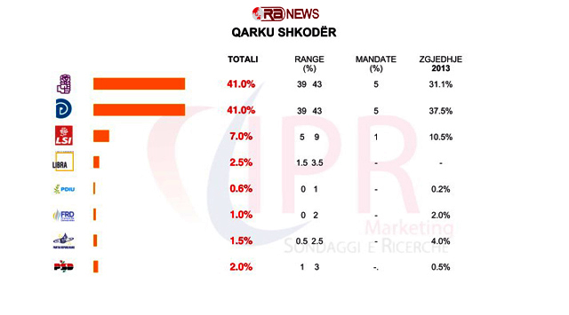 Për qarkun e Shkodrës, ky sondazh i ka nxjerrë barazim dy partitë më të mëdha.