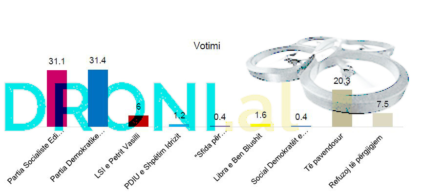Partia Demokratike dhe ajo Socialiste janë pothuajse në barazim mes votuesve, me një avantazh të lehtë të PD-së. Nga të dhënat e studimit, një javë para zgjedhjeve, Partinë Socialiste do ta votonin 31.1% e të intervistuarve dhe Partinë Demokratike 31.4% e të intervistuarve. LSI-në do ta votonin 6% e zgjedhësve, ndërsa PDIU-në 1.2% e tyre.