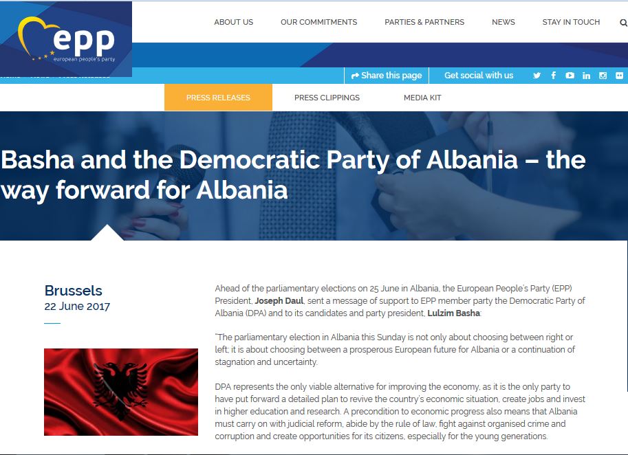 Joseph Daul, Presidenti i Partisë Popullore Europiane, i ka dërguar PD-së, urimet e partive të djathta simotra europiane për një fitore bindëse në zgjedhjet e së dielës. Ndër të tjera ai shkruan se, “Zgjedhjet parlamentare të kësaj të diele në Shqipëri nuk janë zgjedhje mes të majtës dhe të djathtës, por zgjedhje mes një të ardhmeje të përparuar europiane dhe vazhdimit të amullisë dhe pasigurisë së tanishme.