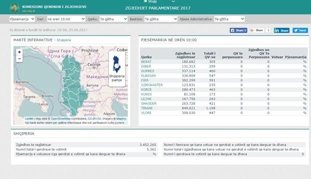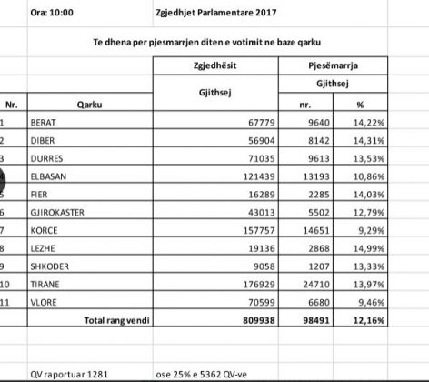 Komisioni Qendror i Zgjedhjeve ka publimuar shifrat që tregojnë pjesëmarrjen e votuesve deri në orën 10:00, në të gjithë Shqipërinë.