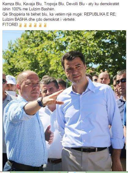“Kamza Blu, Kavaja Blu, Tropoja Blu, Devolli Blu – aty ku demokratët ishin 100% me Lulzim Bashën.