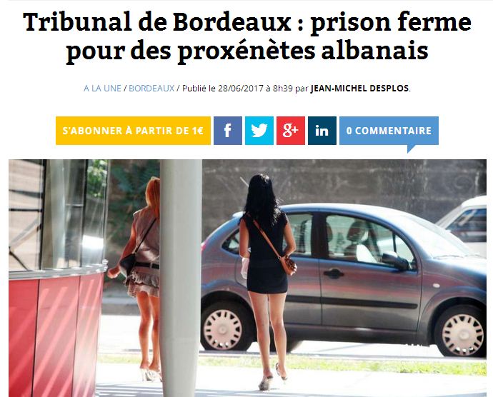 Një gjykatë franceze ka shpallur fajtorë dy shqiptarë pasi akuzohen se janë kokat e një rrejti prostitucioni në rrugët e Bodeaux.